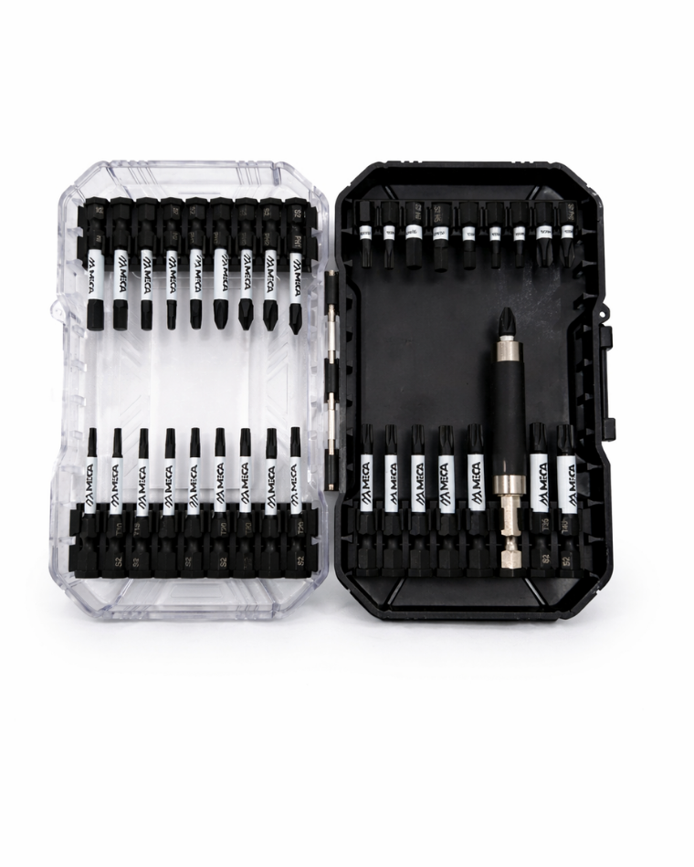Dieses 33-teilige Schlagfest-Bit-Set ist für den professionellen Dauereinsatz konzipiert. Die Bits überzeugen durch präzise Passform, hohe Standzeiten und maximale Belastbarkeit. Hergestellt aus hochwertigem S2-Stahl, besitzen sie eine integrierte Torsionszone, die Drehmomentspitzen kontrolliert aufnimmt und Materialversagen reduziert.